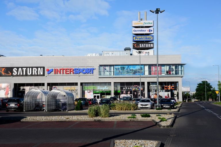 Galeria Pestka in Poznań – a modern shopping center with 70 stores (including large-format Carrefour, Saturn, Bricomarche), service and food outlets and a Jatomi Fitness center.