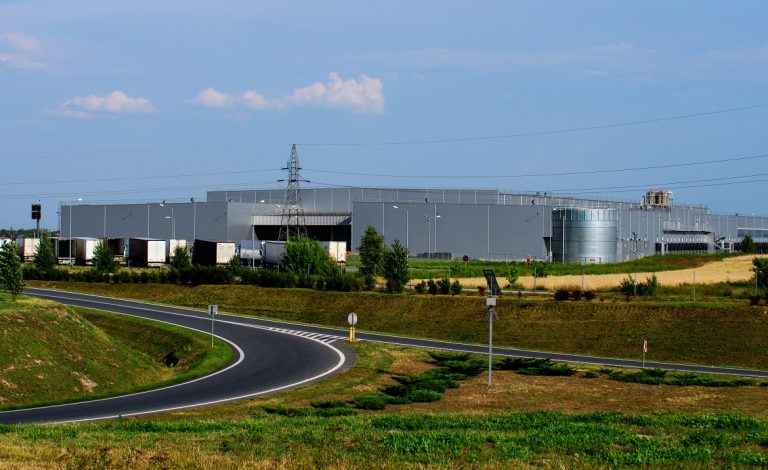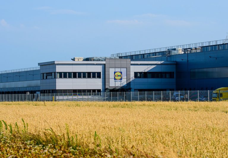 Centrum Dystrybucyjne LIDL dla centralnej Polski – hala magazynowa z dokami dla 120 tirów i budynek biurowy.