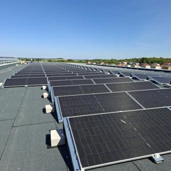 Dla Okręgowej Spółdzielni Mleczarskiej w Piątnicy Eneria zainstalowała na dachu budynku 256 sztuk modułów JinkoSolar o łącznej mocy 267 kWp.